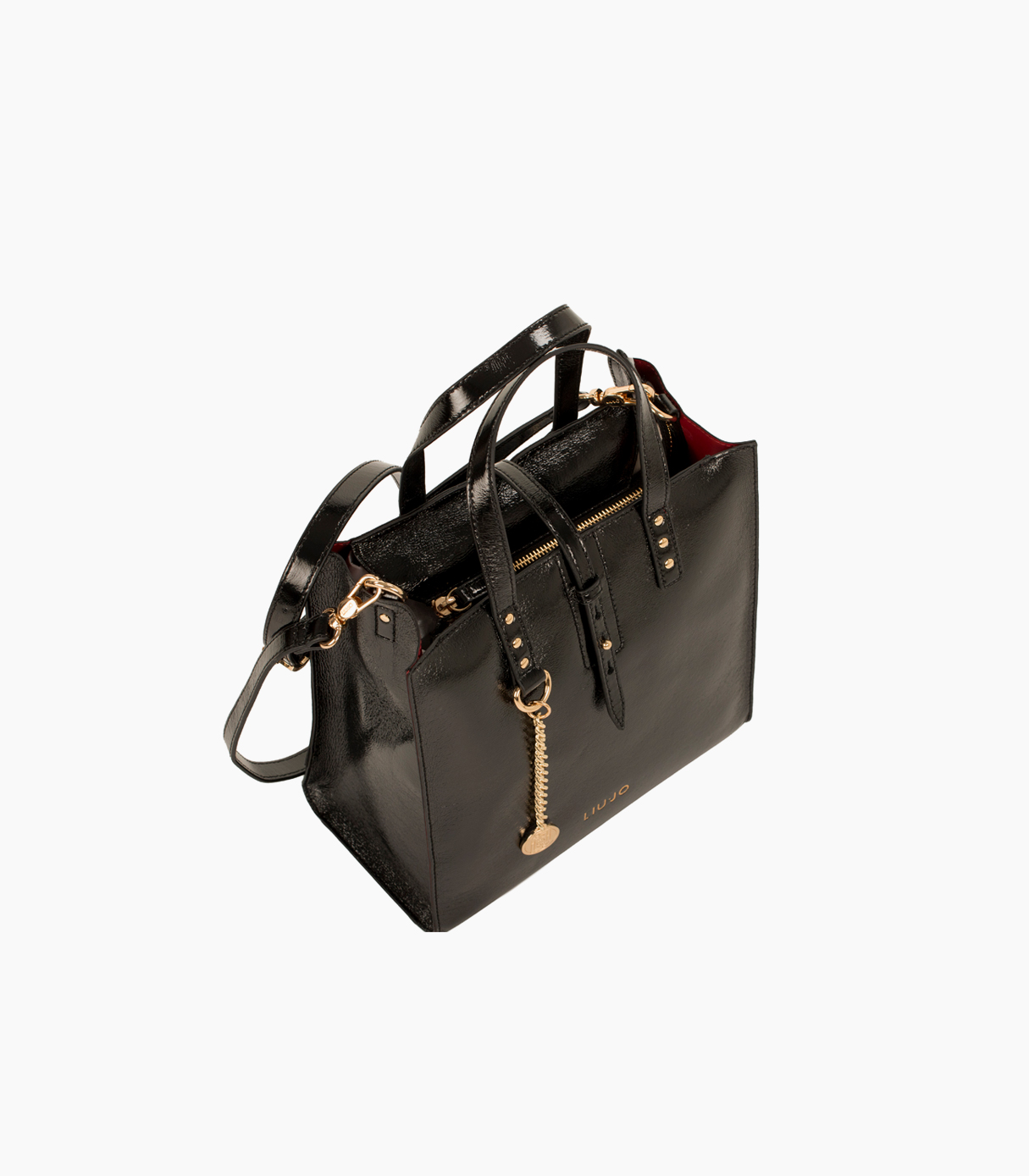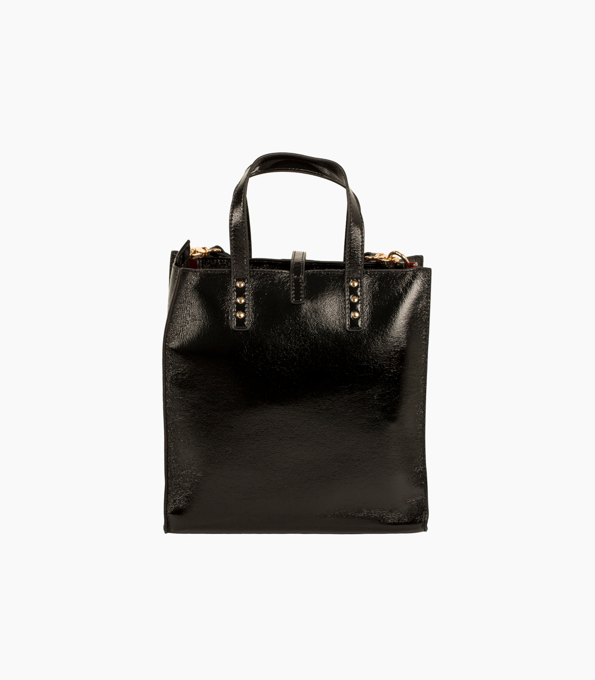 Un diseño elegante y versátil que combina a la perfección sofisticación y practicidad.  Su acabado en negro brillante lo convierte en el complemento ideal para cualquier ocasión, desde un look de oficina hasta una salida nocturna.